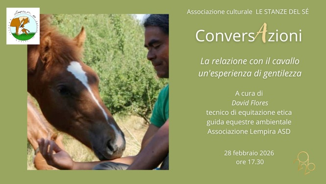 La CONVERSAZIONE è gratuita e dedicata alle SOCIE e ai SOCI dell'associazione LE STANZE DEL SÉ (fino al raggiungimento del numero massimo previsto); chiediamo cortesemente di comunicare la propria partecipazione scrivendo una mail o inviando un messaggio a