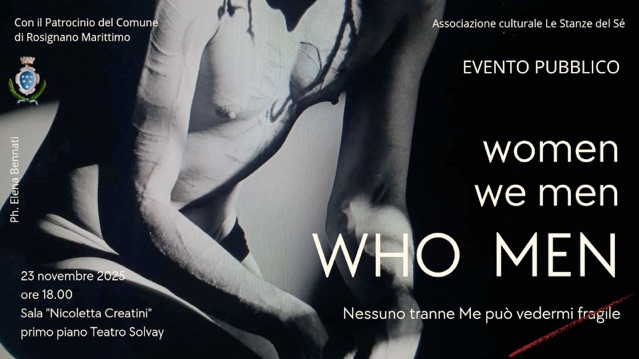 Il nostro progetto WOMEN WE MEN WHO MEN, dedicato alla Giornata internazionale per l'eliminazione della violenza contro le Donne – 25 novembre 2025, si interroga sul dialogo tra donne e uomini, sulle identità, le relazioni e le responsabilità di genere: WOMEN WE MEN WHO MEN, chi siamo, come ci riconosciamo, e soprattutto: come possiamo costruire insieme una cultura del rispetto e della cura reciproca?